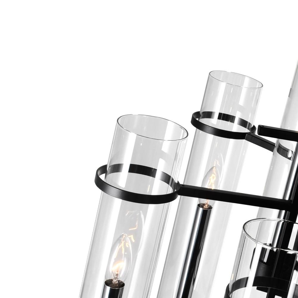 Elegant Design Features eight candelabra bulbs (not included) enclosed in clear cylindrical glass shades for a timeless, sophisticated look.