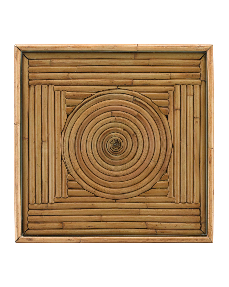 Our Silang Rattan Drinks Table is a petite rattan drinks table with a hand-made geometric pattern on the top. Artisans painstakingly cut and fit the reeds in place to create this artful arrangement in the plant's warm hues. The material is protected by an inset glass top.