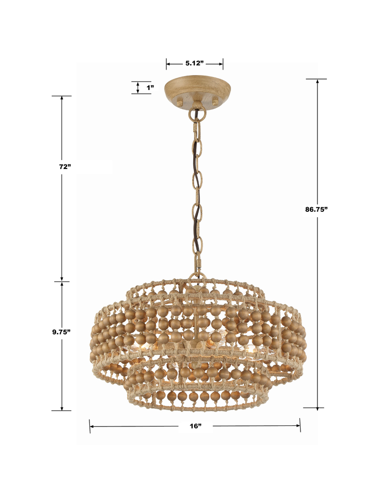 The Silas interlaces natural wood beads with jute rows, bringing an organic element to its environment. A series of beads are strung together, taking on a handmade aesthetic that creates an inviting and casual style to a room.