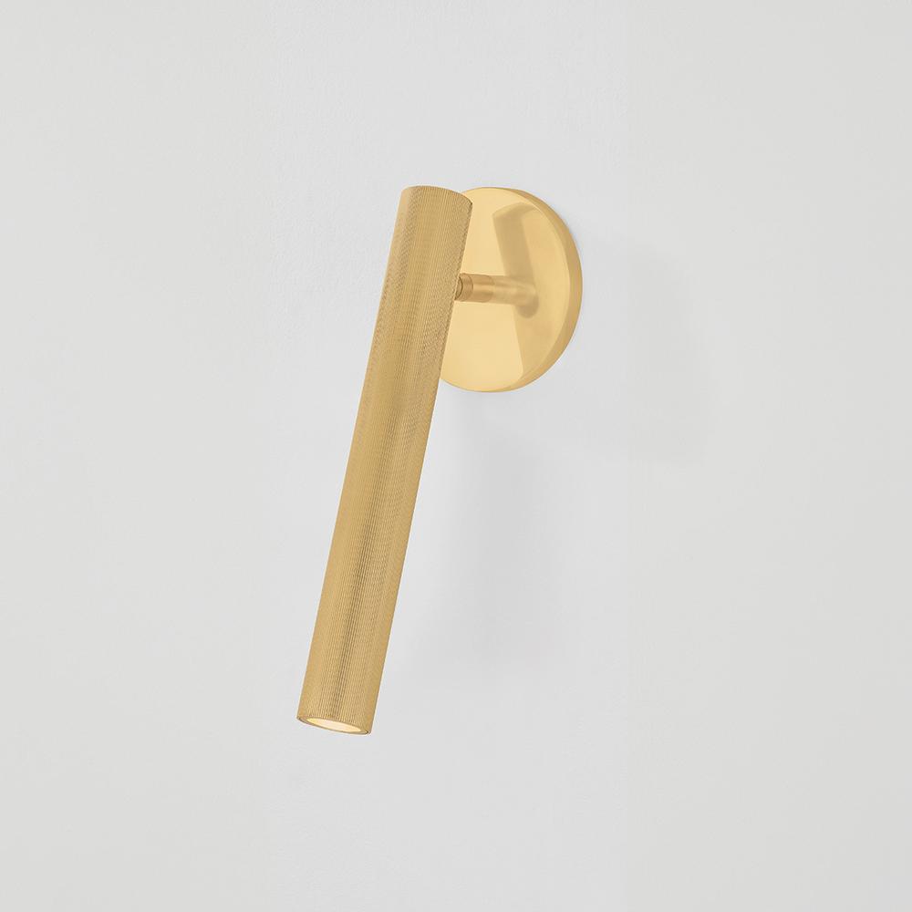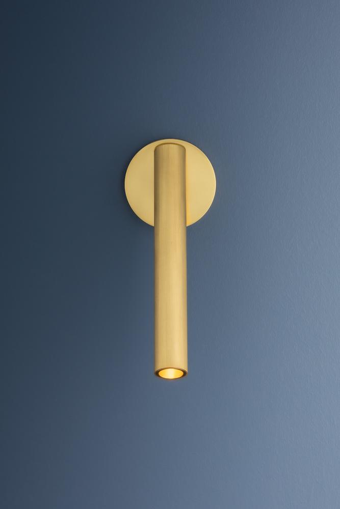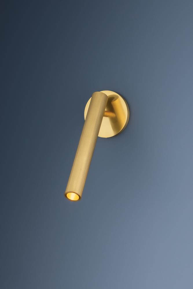 Integrated with CSL’s ‘Whisper’ technology, Simeon offers peak functionality in a streamlined sconce format. While understated, a level of style is achieved with the extruded ribbing on the Aged Brass articulating shade. Within this elongated silhouette, an LED light source and acrylic diffuser work together to create a powerful, glare-free spotlight that can be directed as needed. Highly versatile, Simeon can be mounted on either a wall or ceiling.
