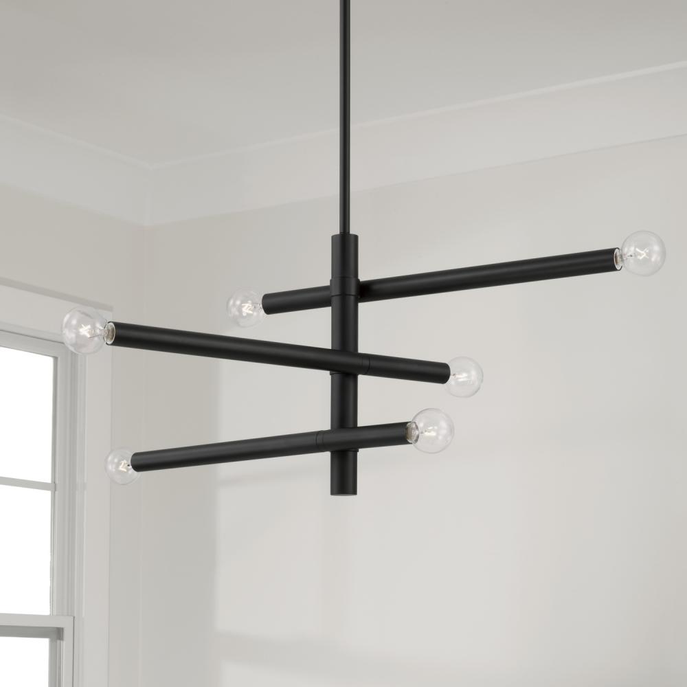 Defined by sleek lines and a modern form, the Zane Small Chandelier brings sophisticated sputnik style to any space. The neutral tone of the Matte Black finish punctuates this minimalist luminaire.