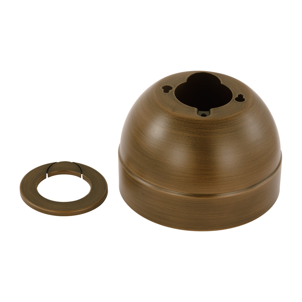 The Universal Slope Ceiling Canopy Kit in Aged Brass provides sloped ceiling mount capability for compatible fans.