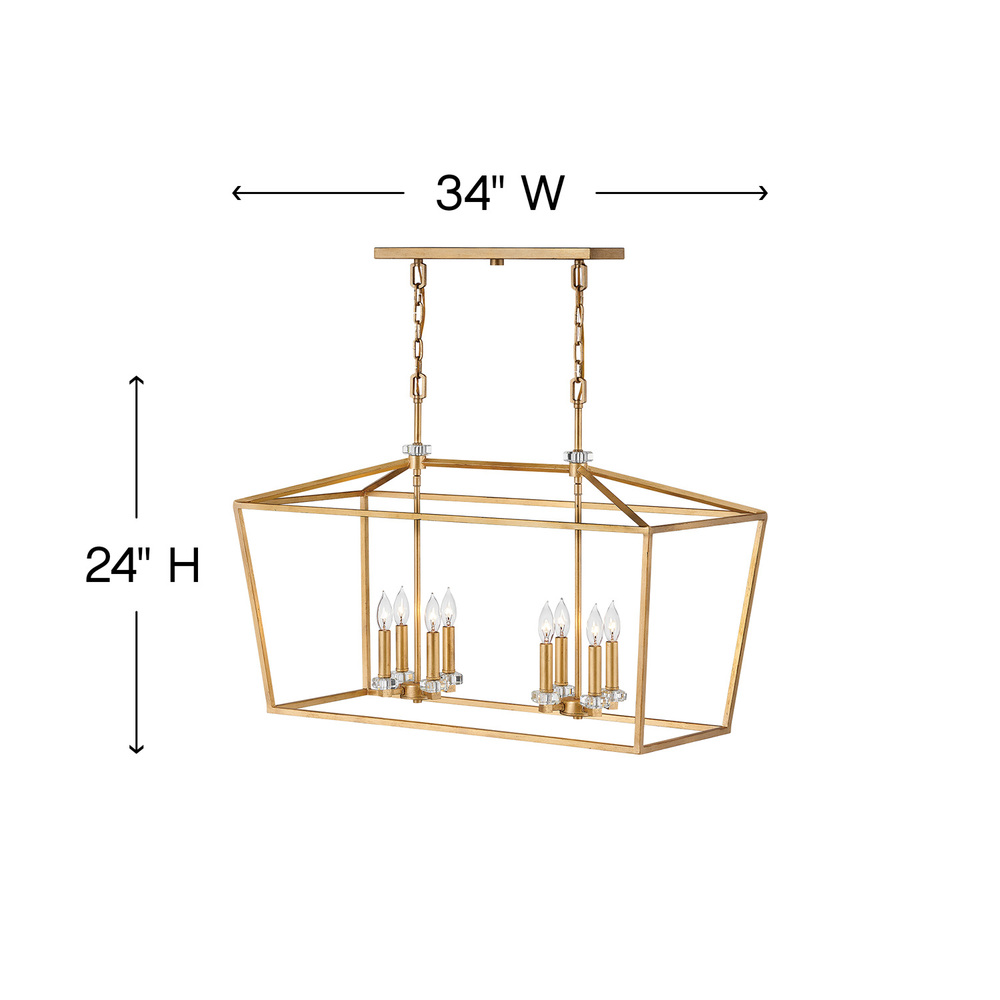 For a classic statement-maker, Stinson hits the mark. A robust open and airy cage, designed for maximum impact in Distressed Brass or Black with Polished Nickel finish, is accompanied by refined sparkling crystal accents to create the perfect mix of traditional appeal and industrial panache.