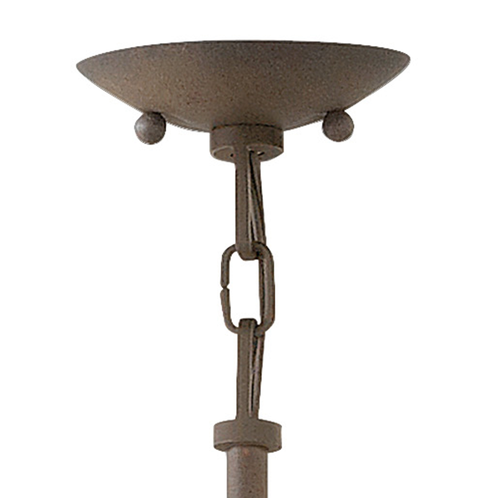 Carson features bold overlapping metal ribbons of Vintage Iron, enhancing an outdoor living area with style and substance. The handcrafted pendants combine a hint of industrial sophistication with the allure of artisan craftsmanship.