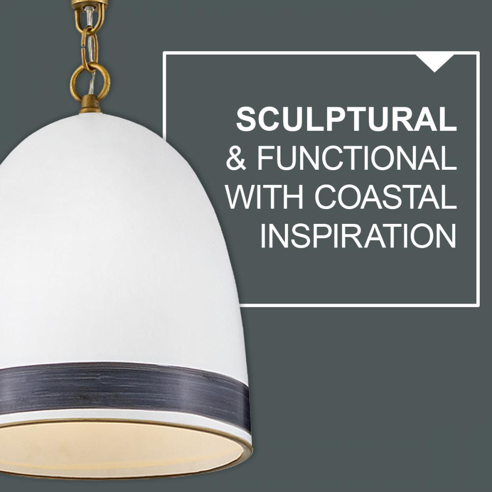 Fresh and welcoming, Nash merges sculptural and functional features with coastal inspiration. A hand-painted stripe and contrasting tipping complete the thrown ceramic shade. Combined with a thick jute rope, the details of Nash bring organic warmth and texture to any space.