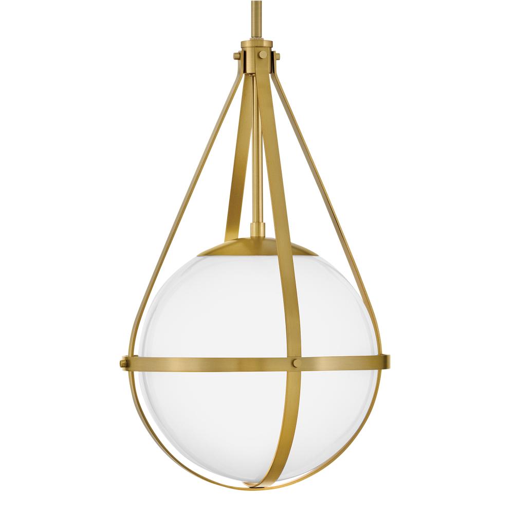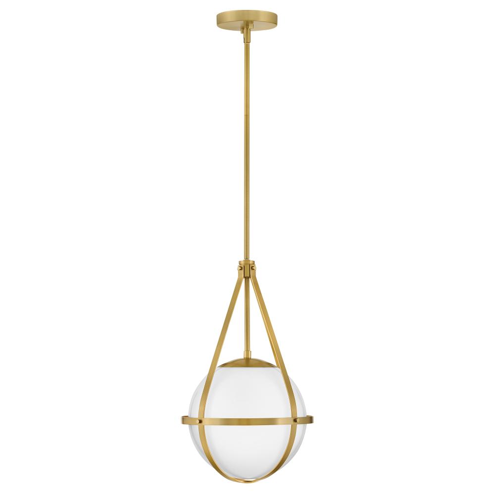 A retro, modern stunner, Colby’s cased opal glass globe, accentuated by a cage-style frame, creates unexpected glamour in any space.