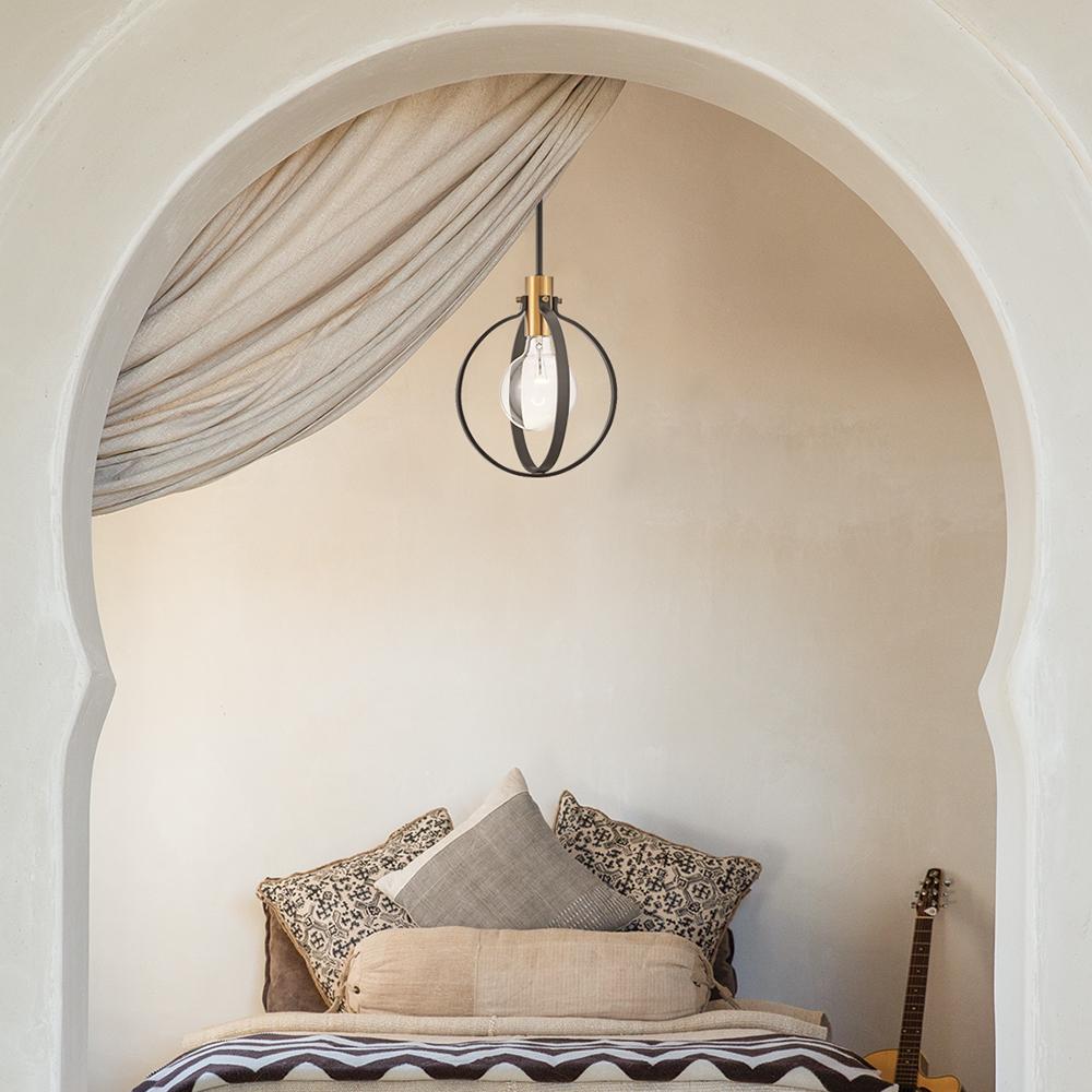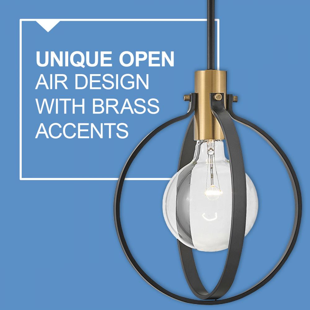 Add modern whimsy to your space with Cirque. The unique open air, orb-shaped design is emphasized by flat metal bands in a striking Black finish finessed with Lacquered Brass accents. Style Cirque in a variety of spaces – wherever you’re looking to add an air of the unexpected.