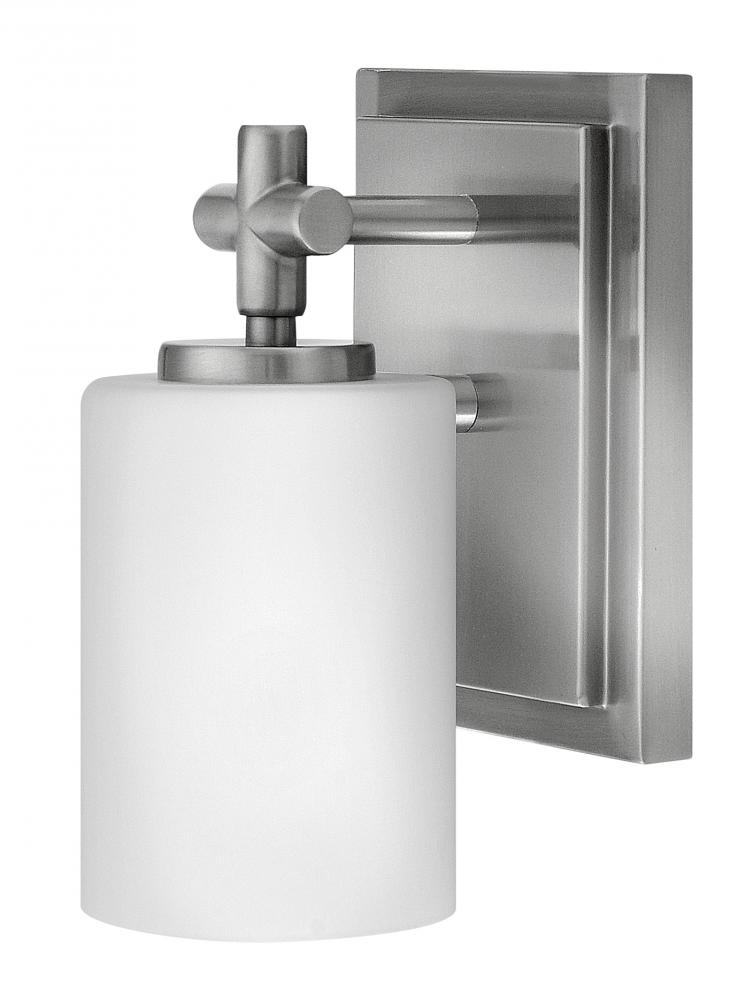 Laurel's appealing form combines both traditional and transitional design elements. Available Brushed Nickel, and features etched opal glass shades and medium base bulbing. Chic details, such as a precision die-cast cross reminiscent of a timeless faucet handle, and a cast stepped backplate, convey a lasting elegance.
