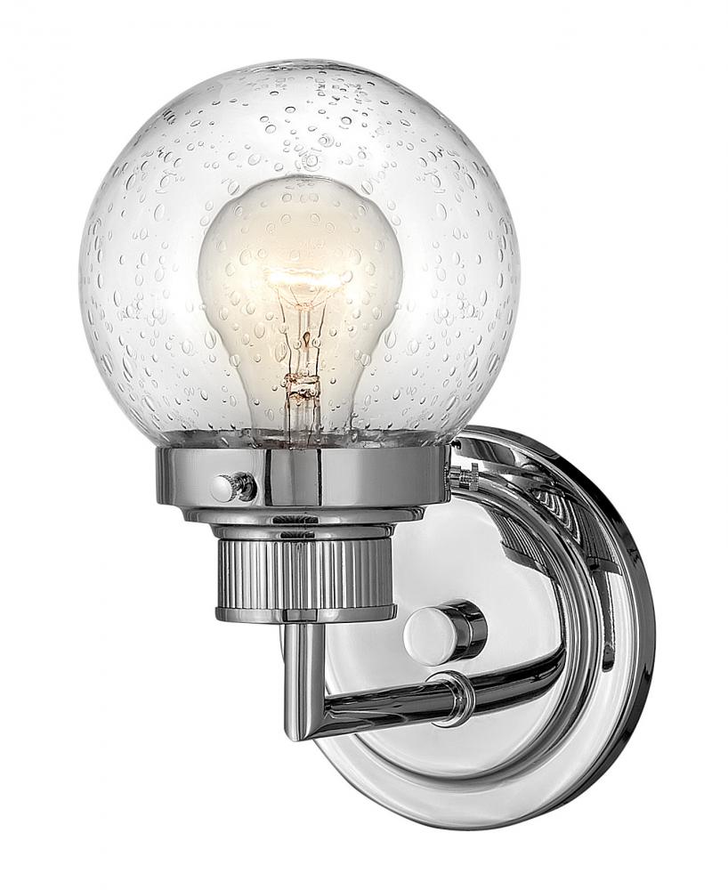 Poppy features clear glass spheres that bubble out of the refined, ribbed Chrome or Heritage Brass fitters to create a simple, yet sophisticated silhouette. An elegant, stepped backplate and crisp crossbar anchor this airy design. Poppy showcases mid-century style with a spectacular spin.