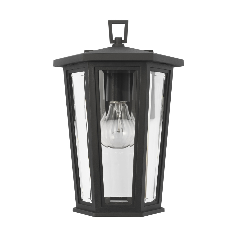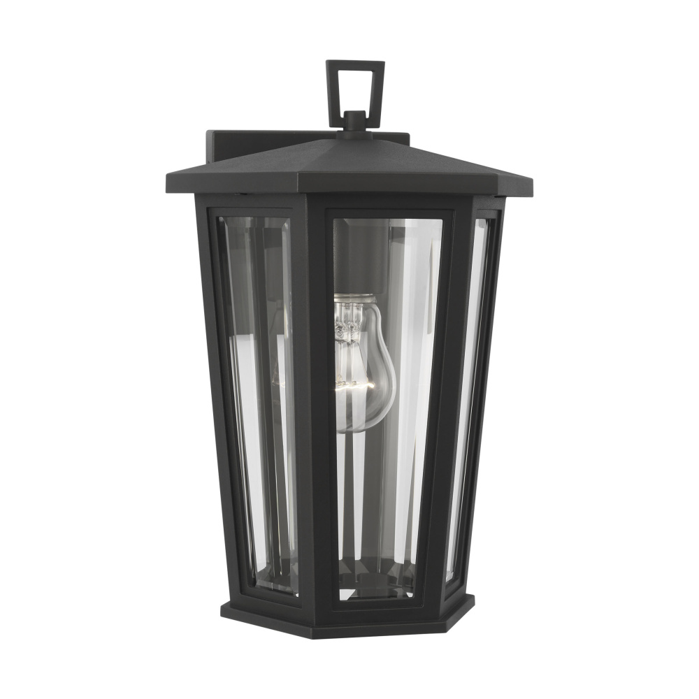 The Witley outdoor series by Sean Lavin Lighting is reminiscent of traditional outdoor oil lanterns with several individual panes of glass coming together to create facets that catch the light. Generous proportions in the Textured Black finish and Clear Beveled glass provide generous illumination to welcome guests and brighten passageways. The assortment includes mini, small, medium, large, and extra-large outdoor wall lanterns, a medium pendant, and a 3-light outdoor post lantern.