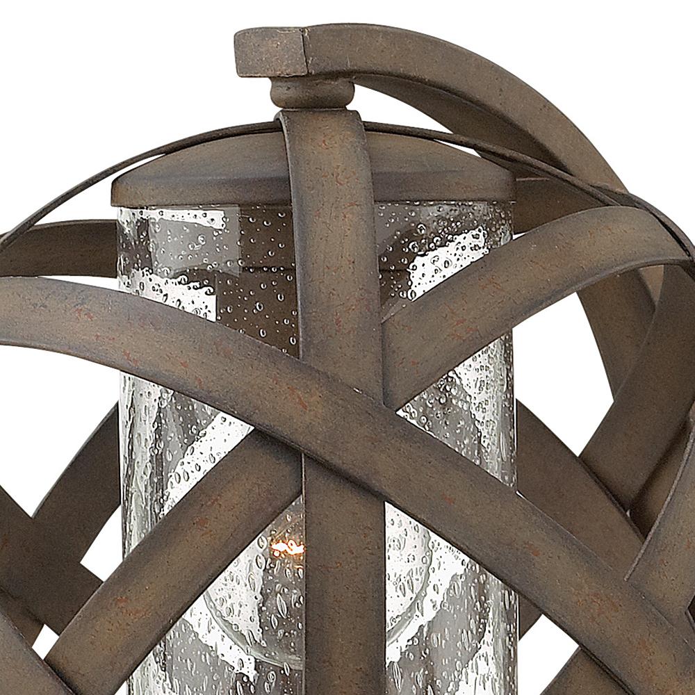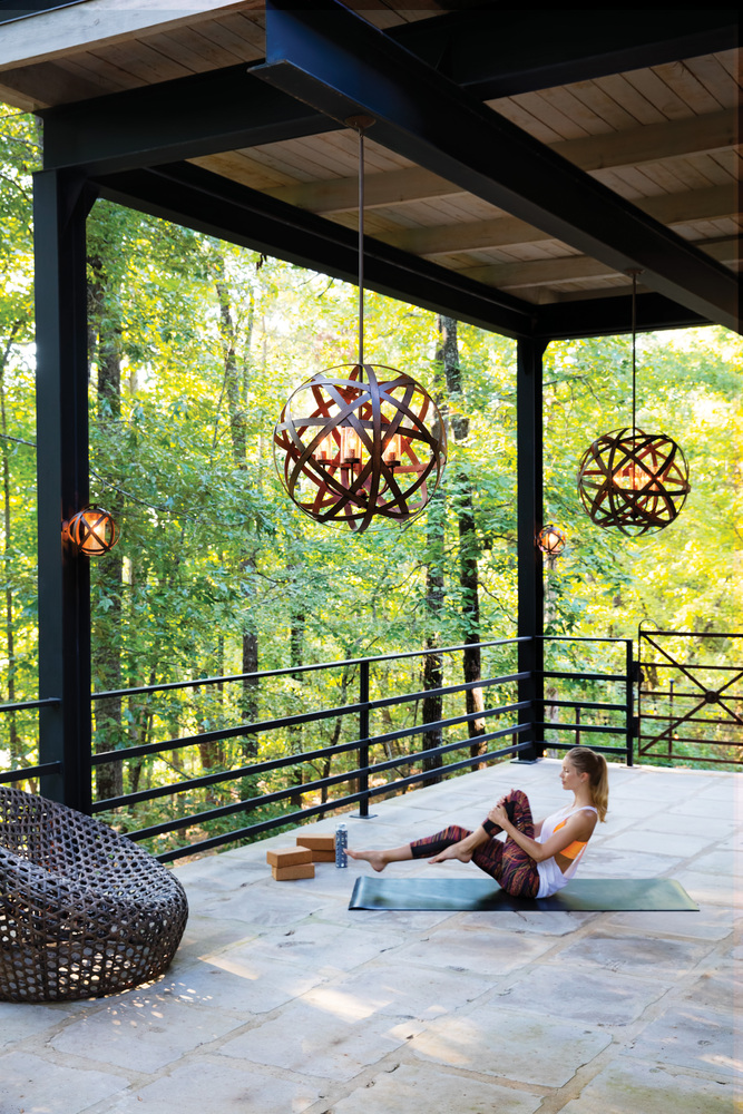 Carson features bold overlapping metal ribbons of Vintage Iron, enhancing an outdoor living area with style and substance. The handcrafted pendants combine a hint of industrial sophistication with the allure of artisan craftsmanship.