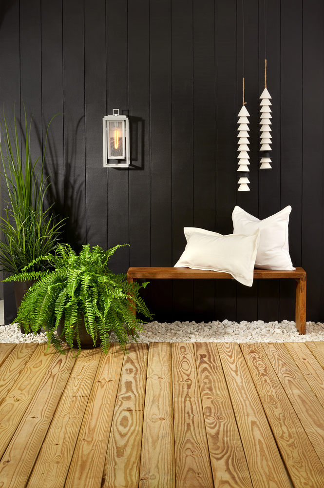 Republic's striking double frame design, constructed from a composite material and treated with an anti-fading agent for maximum durability, is at home on the coast or a country lodge. The Oil Rubbed Bronze, Satin Nickel and Black resilience finishes feature a 5-year warranty and are resistant to rust and corrosion. Vintage filament bulbs are recommended to complete a stylish look.