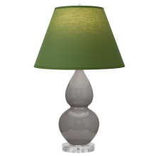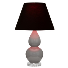 Smokey Taupe Glazed Ceramic with Lucite Base Small Double Gourd Accent Lamp with Pearl Dupioni Fabric Shade - Our Double Gourd collection features a simple but gracefully curving silhouette. Available in a wide array of vibrant colors and several different base finishes.