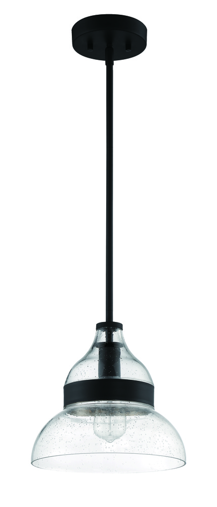These rod hung clear seeded glass shade with brushed nickel or flat black metal band and canopy single light Smyth pendants capture the essence of style with the ability to customize the height and bulb up to 100W.