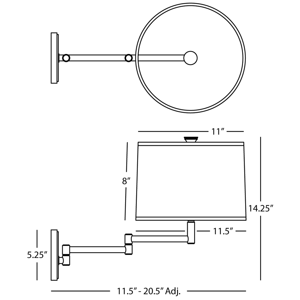 Concentric circle details on our Sofia Collection, add a subtle finesse, making it a great lighting solution for any space - Dark Antique Nickel Sofia Wall Swinger with Open Weave White Linen Shade