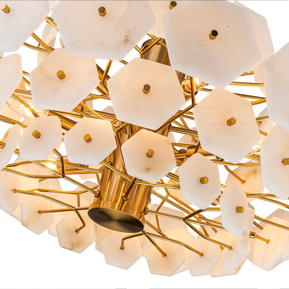 The Solenne Collection captures the serene beauty of alabaster and the quiet strength of sculptural design. Each piece features hand-carved hexagonal alabaster tiles arranged in a soft, radiant silhouette that glows with natural warmth. Calm, elegant, and timeless, Solenne brings a gentle luminosity to any refined interior.