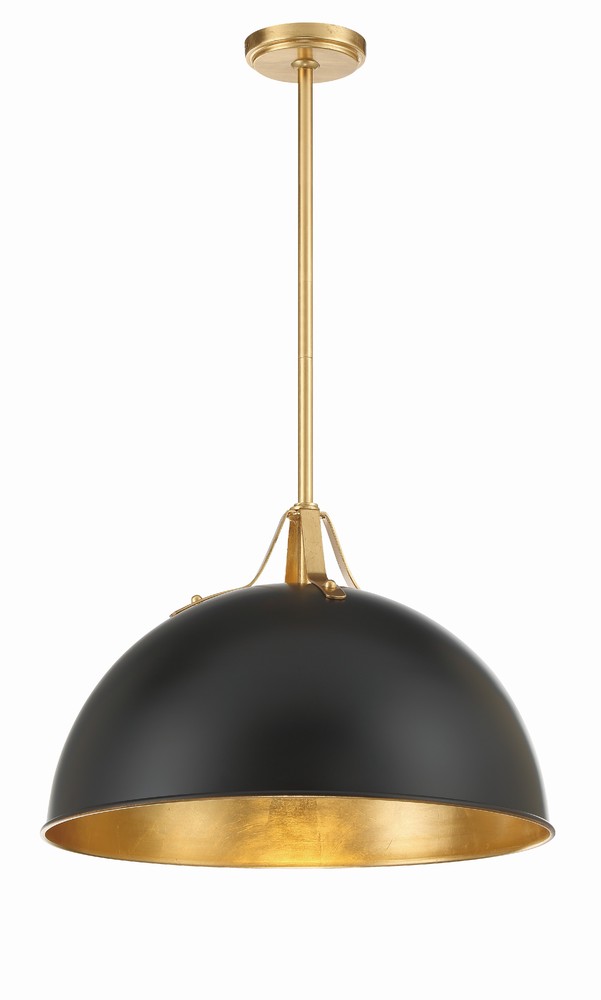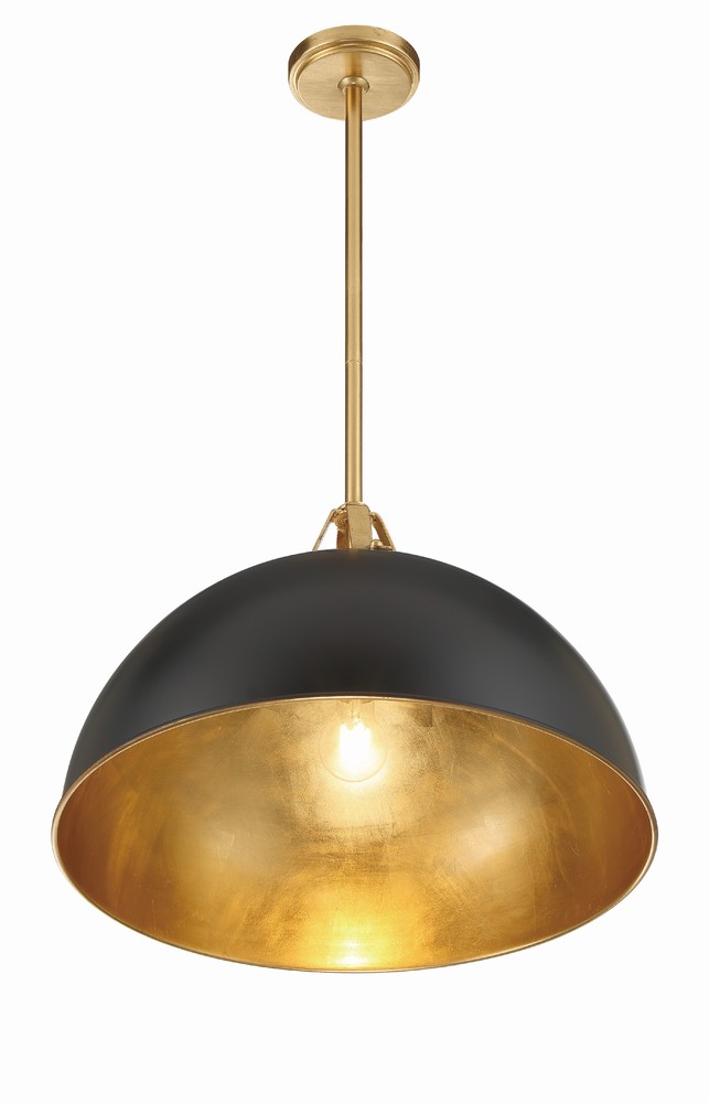 Black metal dome pendant with gold accents.