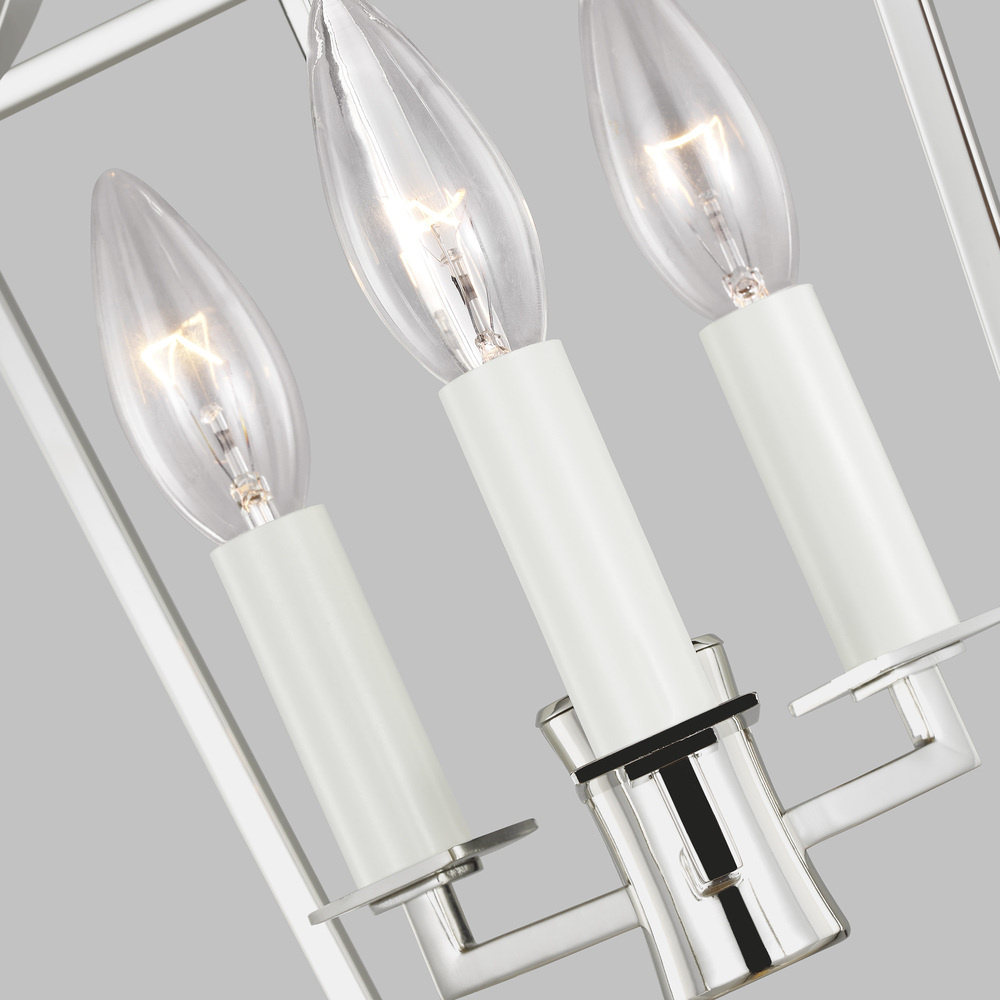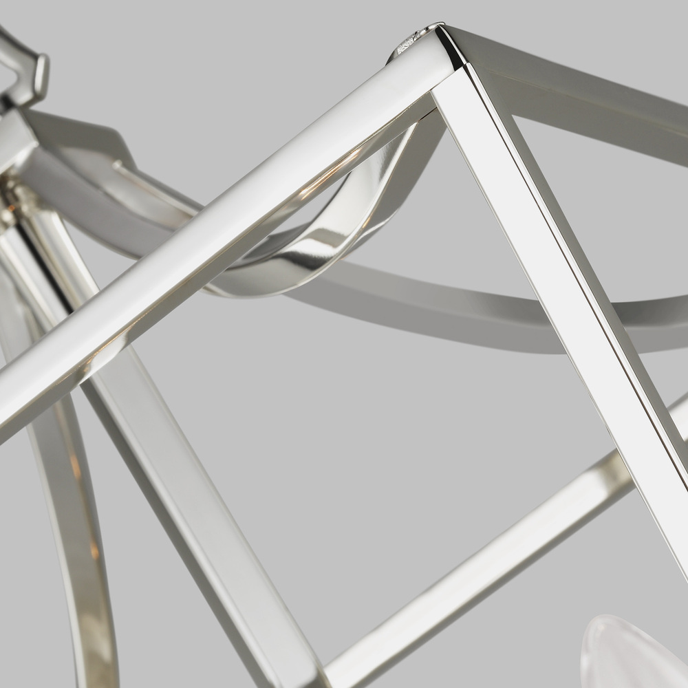 Southold by Chapman & Myers pairs curves and lines to form a classic geometric silhouette. This new, contemporary lantern has a thin frame that gives it an airy feel, paired with a tight hub for the candelabra. For a more modern look, try Southold in Polished Nickel. This lantern series will make any space well-lit and elegant.