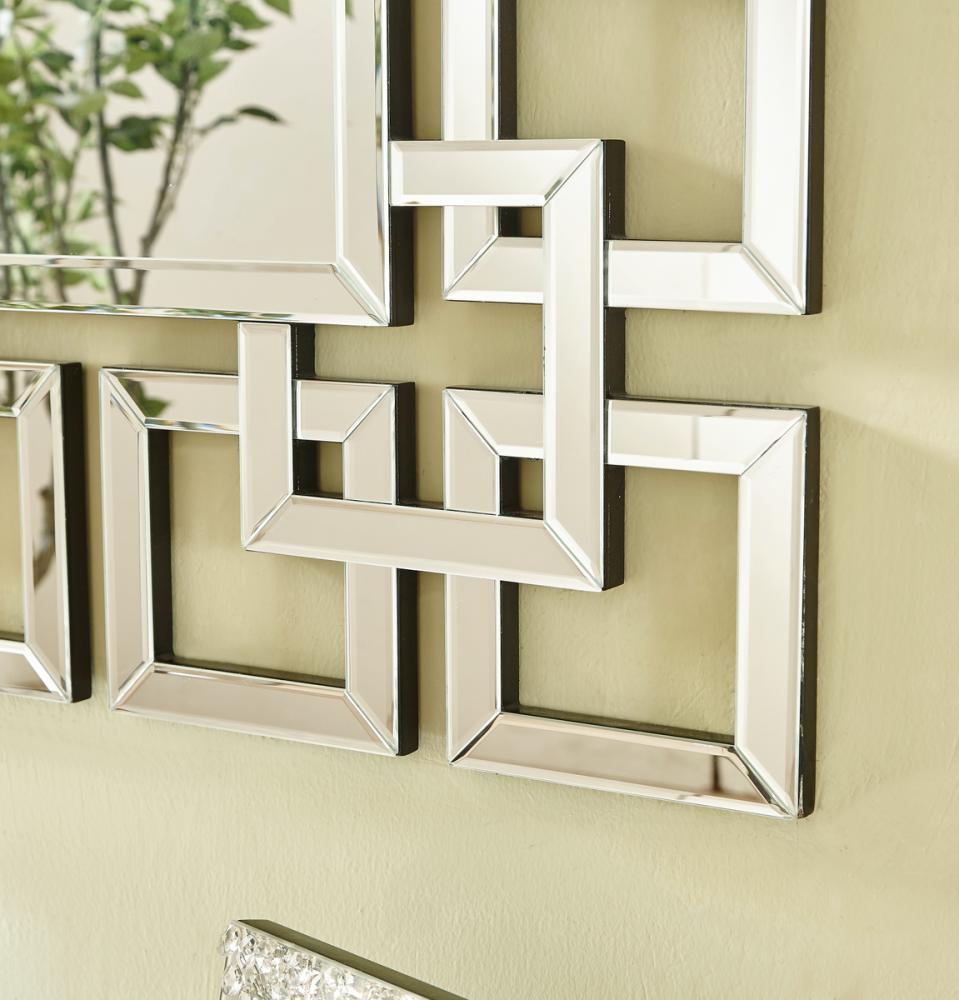 Featuring dozens of expertly cut, beveled edge mirror pieces