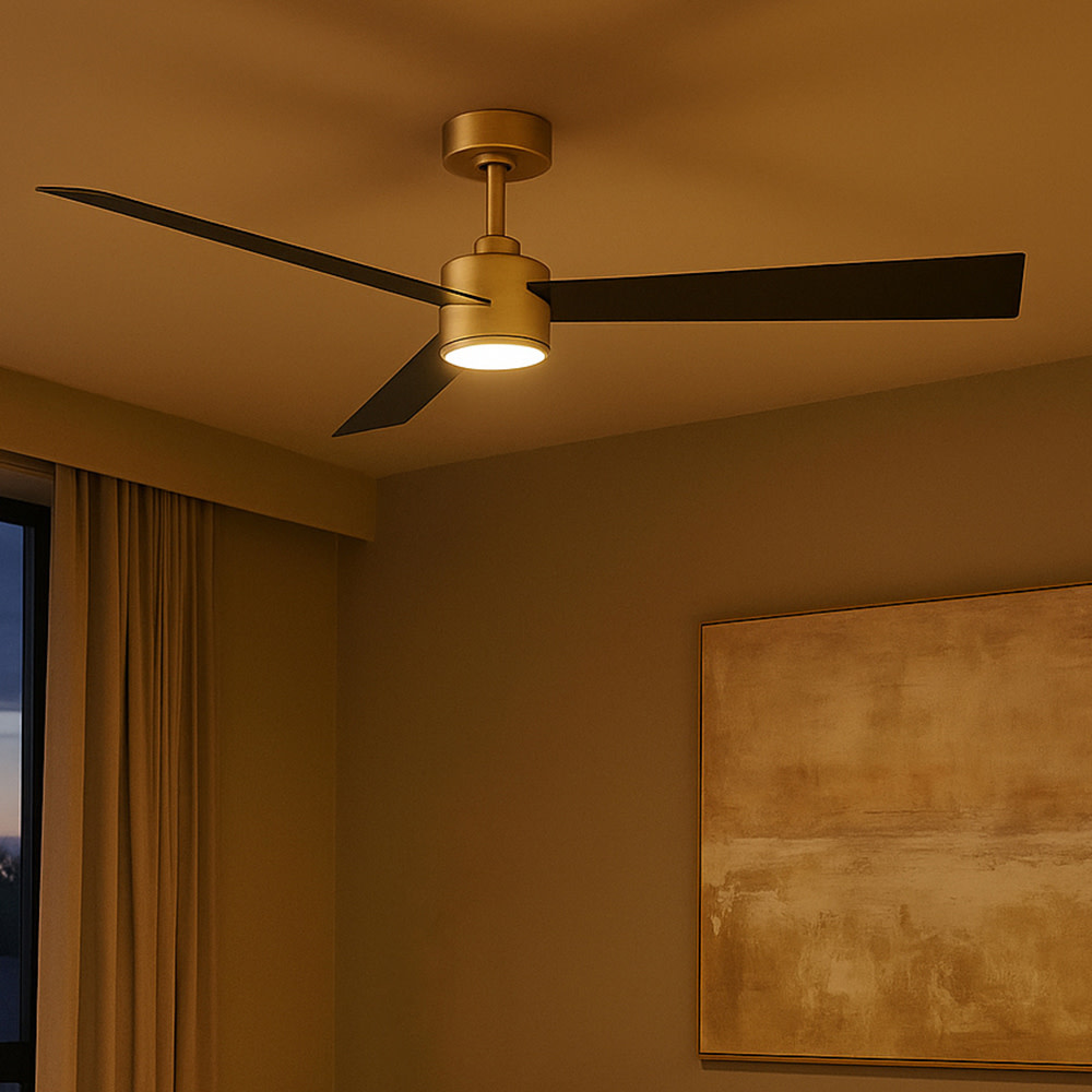 Speck’s sleek design features three wood blades in classic finishes to complement both modern and traditional settings. Its versatile damp-rated construction can enhance interior or covered outdoor living spaces. Equipped with a 6-speed DC motor that is WiFi enabled and ready to connect right out of the box. Operated by the HIRO control or WiFi compatible with the Hinkley App.