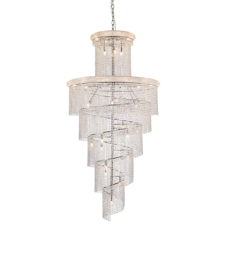 Elegant V1800SR36C/RC - Spiral 32 light Chrome Chandelier Clear Royal Cut Crystal