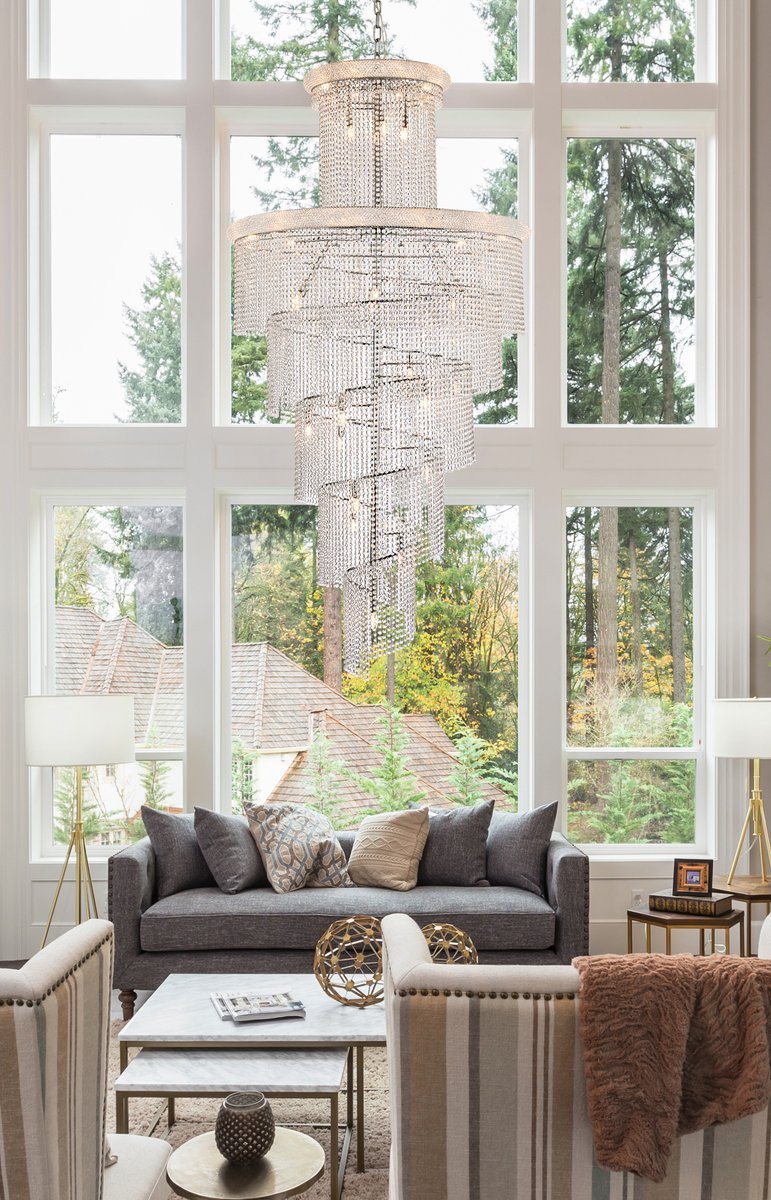 Mesmerizing crystals cascade in a waterfall of glamorous light in the Spiral collection. The magnificent chrome- or gold-spiraled frame is adorned with shimmering elegant-cut, royal-cut, Swarovski Spectra, or Swarovski Elements crystal strands. Bring glistening light to your foyer, living room, or dining room with a Spiral hanging fixture.