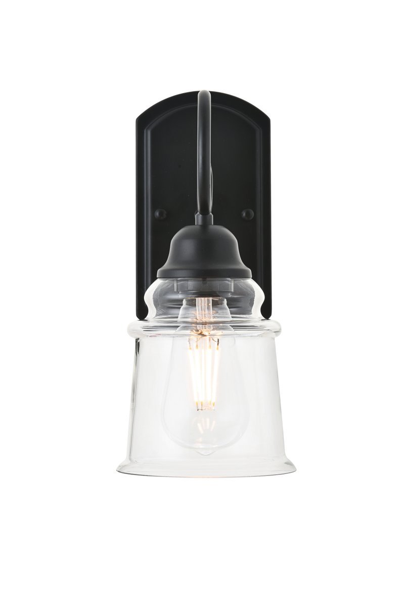 Illuminate your space and create a cozy atmosphere with the Spire collection wall lamp. Everything is in its most artistic form--the gentle curves of the backplate, the clear glass lampshade, and the black finish arm that ends in a playful twirl. Whether it lights up the stories read at bedtime in your living room or bedroom, or greets and guides your guests as they enter your beautiful home, this wall lamp will surely please all.