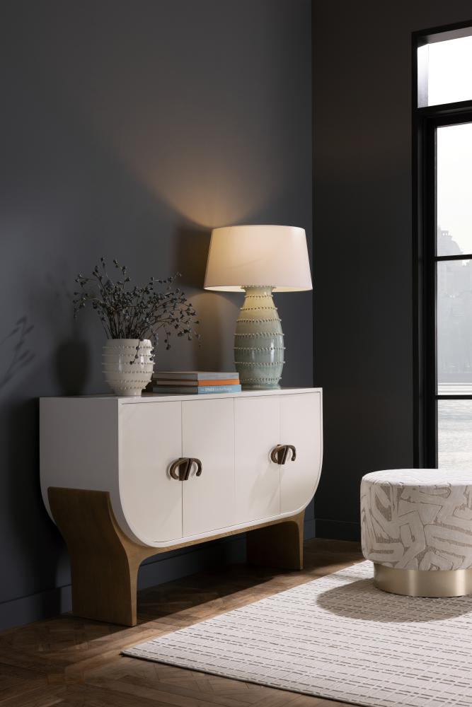 THIS ELEGANT CELADON FINISHED CERAMIC TABLE LAMP IS ACCENTED WITH HAND-APPLIED SOFT BEADED BUMPS. TOPPED WITH A MATCHING CERAMIC FINIAL AND AN OFF-WHITE MICROFIBER SHADE LINED IN MATCHING OFF-WHITE COTTON FOR A SUBTLE GLOW. FINISH WILL VARY.