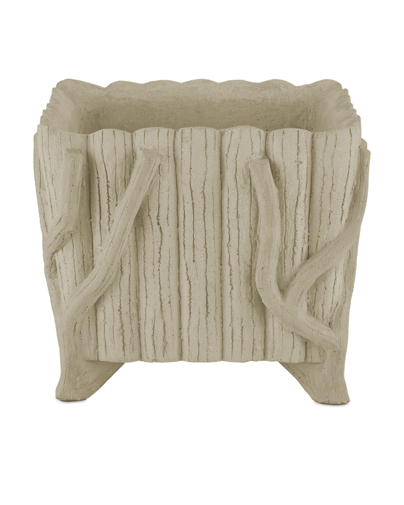 The flowing twig-like details along the ribbed surface of the Square Faux Bois Planter were hand-applied by artisans who “sculpt” the concrete over a metal frame to look like a rustic faux bois artifact. The Portland finish that settles into the natural crevices enhances the illusion of age that will bring a nice hint of texture to indoor or outdoor settings. Ornamented with tree branches, once the concrete planter is sprouting with plants, it will fool the eye into thinking it is a true antique.
