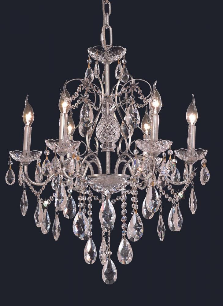 Inspired by centuries of artisans who crafted magnificent chandeliers for castles and palaces, the St. Francis collection offers updated fixtures that will enhance the elegance of any room where they’re hung. The intricate steel frames are adorned with graceful sweeping arms holding candelabra-style bulbs on delicate crystal bobeches, all accented with a glorious shower of crystal drops, festoons, and beads. Available in beautiful chrome, dark-bronze, or gold finishes and a choice of crystal trims, in a range of diameters from 24 to 36 inches. A wide, cylindrical shade is also included on certain models.