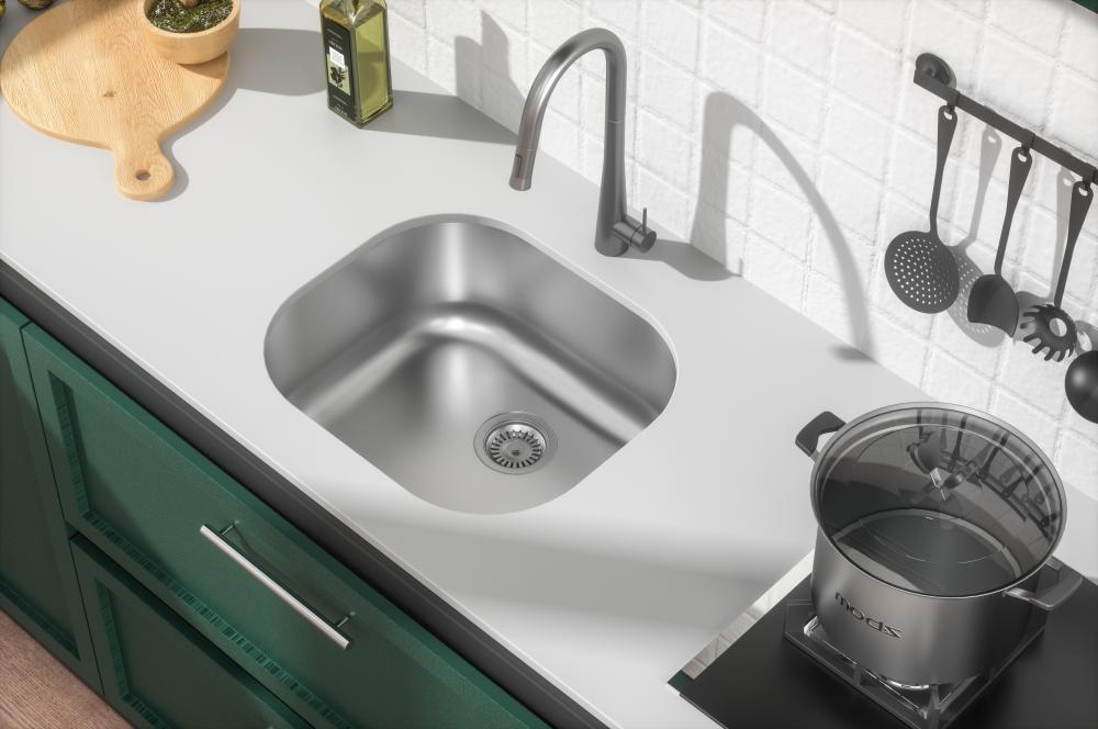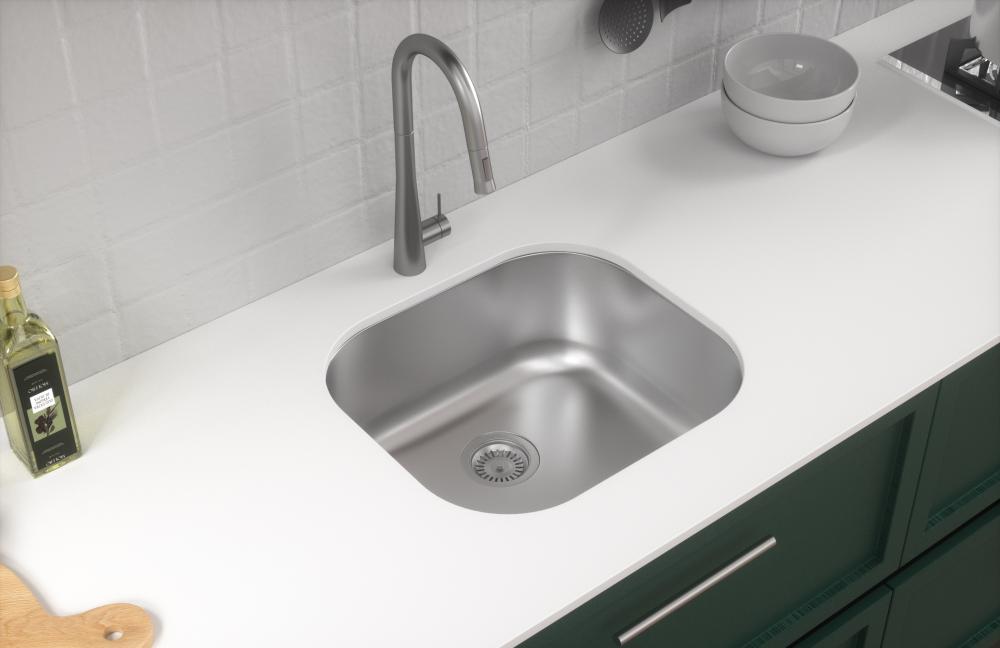 A spacious Single bowl provides ample space for washing several items while containing mess and splatter inside the sink. Classic rectangular undermount installation designed to withstand heat, corrosion, stains, and rust. Highly durable sink with drainage grooves and sloped sink bottom to help divert water into the drain. Installation ready and comes with the mounting hardware and cut-out template.