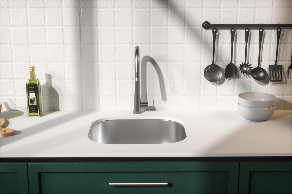 zero faucet holes allows for endless placement of the kitchen faucet and soap dispenser