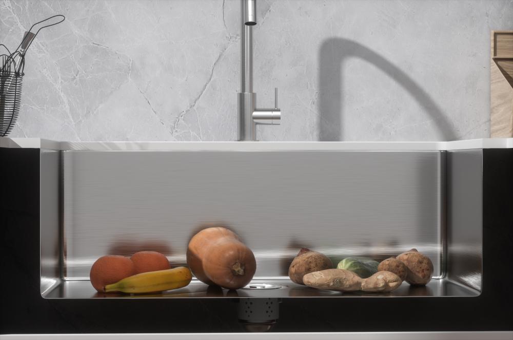 zero faucet holes allows for endless placement of the kitchen faucet and soap dispenser