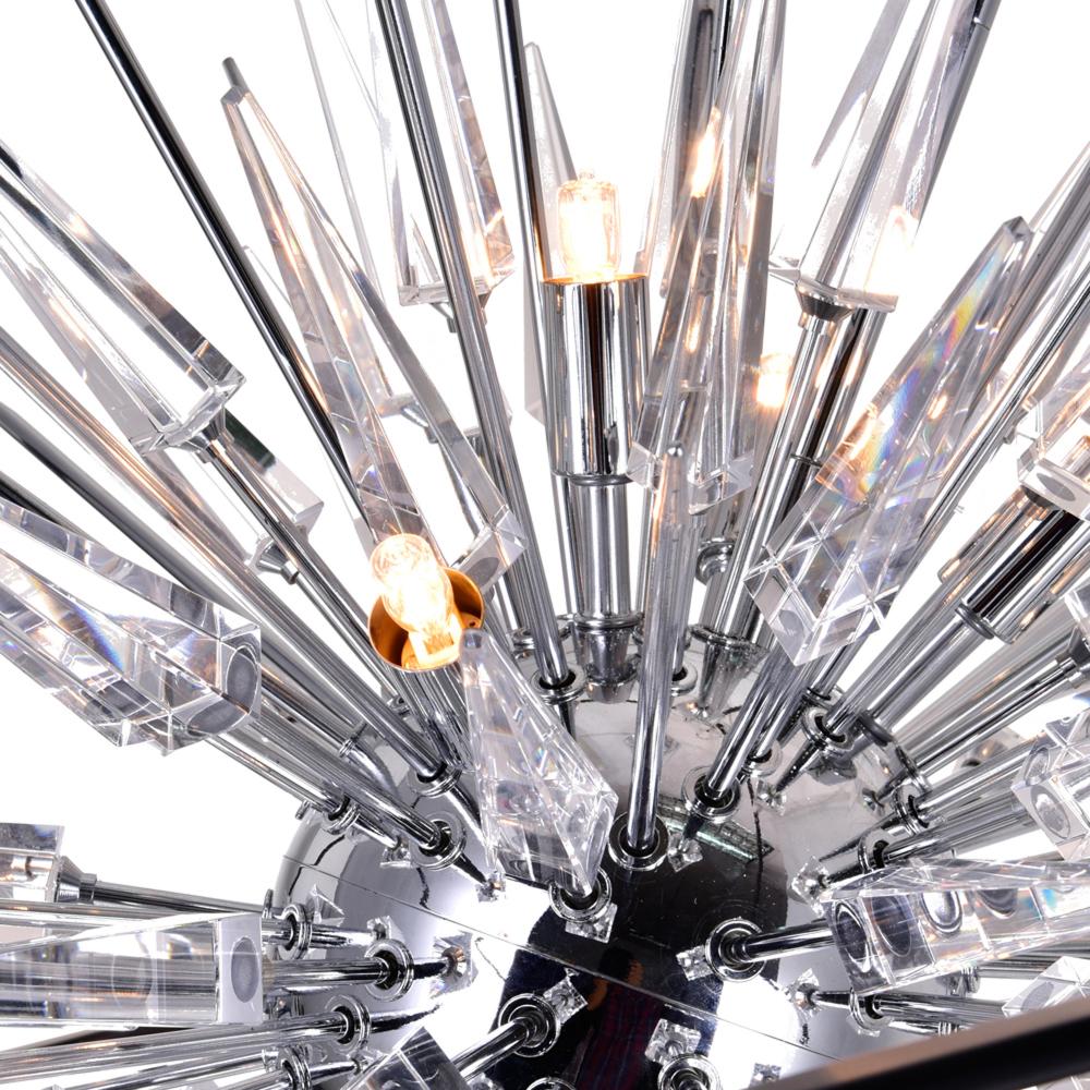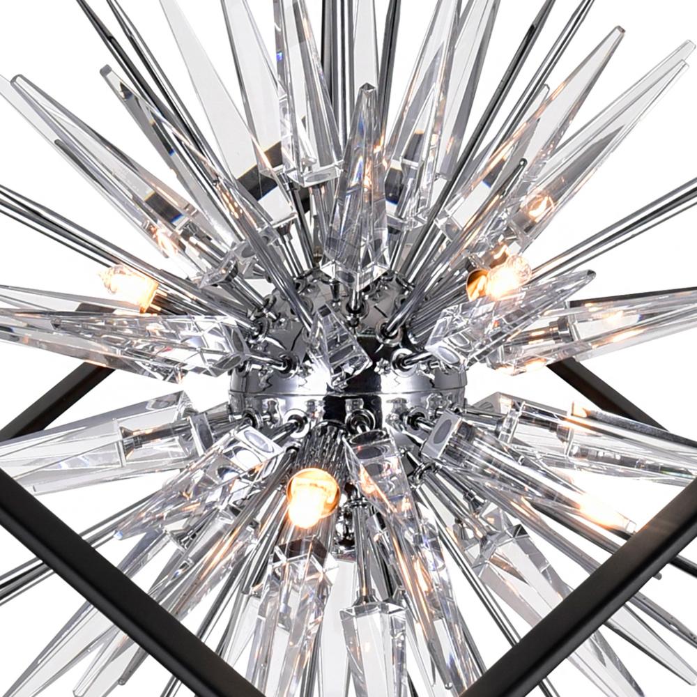 Transform your room into a stunning showcase with the Starburst 6-Light 22-Inch Chandelier—a breathtaking fusion of artistry and illumination. Designed to impress, this bold chandelier combines a sleek chrome centerpiece with a sophisticated black-finished frame, creating a dramatic focal point in any space. Perfect for modern and contemporary interiors, this chandelier delivers ample, elegant lighting while making a powerful style statement. Its architectural design adds a touch of avant-garde flair, turning your ceiling into a gallery-worthy display.
