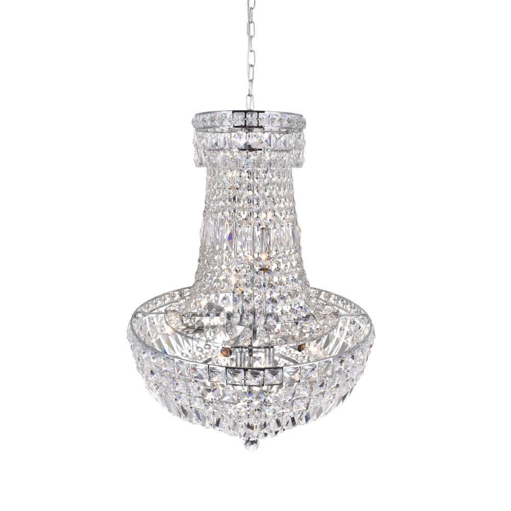 Make a grand statement in your foyer with the Stefania 13-Light Chandelier. Featuring a polished chrome finish and dazzling crystal accents, this down chandelier casts a luxurious glow that instantly captures attention. Its elegant design brings a touch of sophistication and glamour, creating an impressive focal point that welcomes guests with style and brilliance.