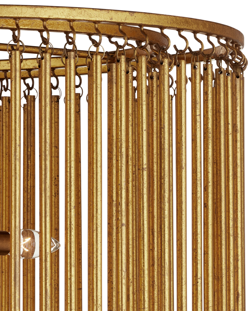 The Stewart Semi-Flush is an artistic exploration of metal with its arcing bands that mimic the shapes of the leaves resting above them. Designed as a nod to botanicals, this fixture is covered in a brilliant gold leaf finish. Bouncing light onto the leaves while simultaneously reflecting it onto the ceiling to create a warm glow was the aim with this nature-inspired gold semi-flush.