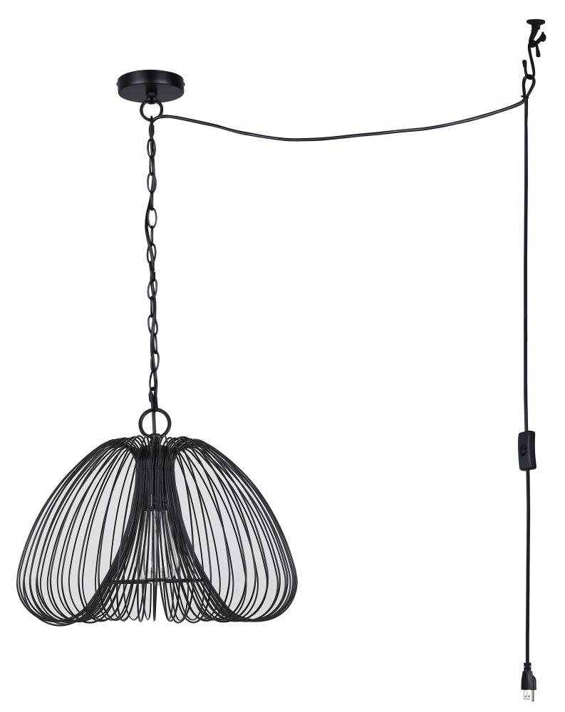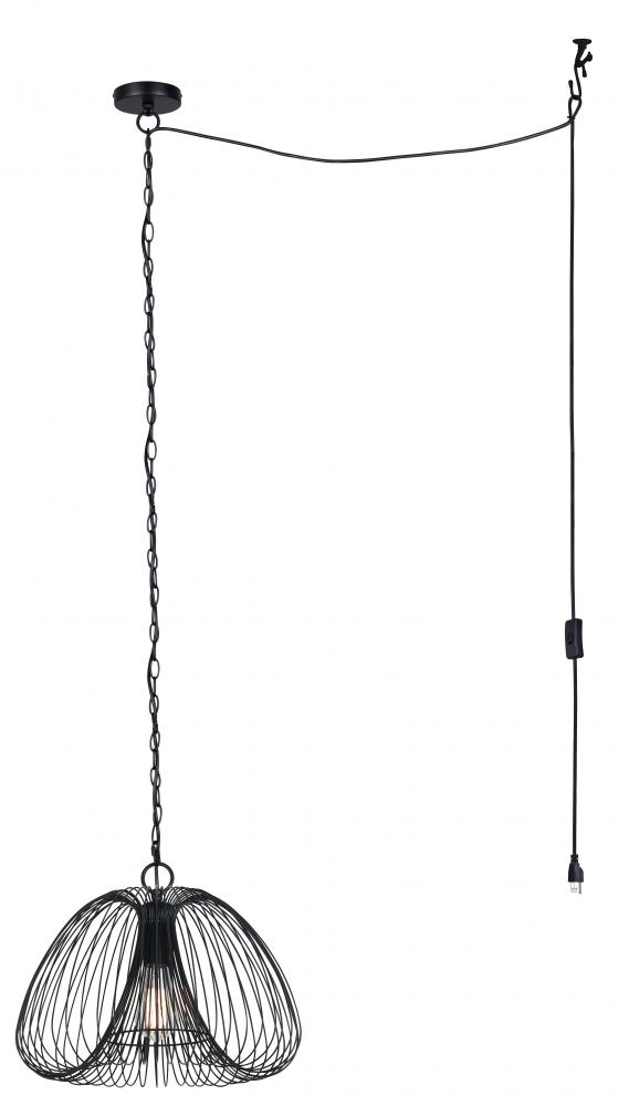 STOCKHOLM 60-Watt 1 Light Black Casual Swag Pendant with Black Metal Shade