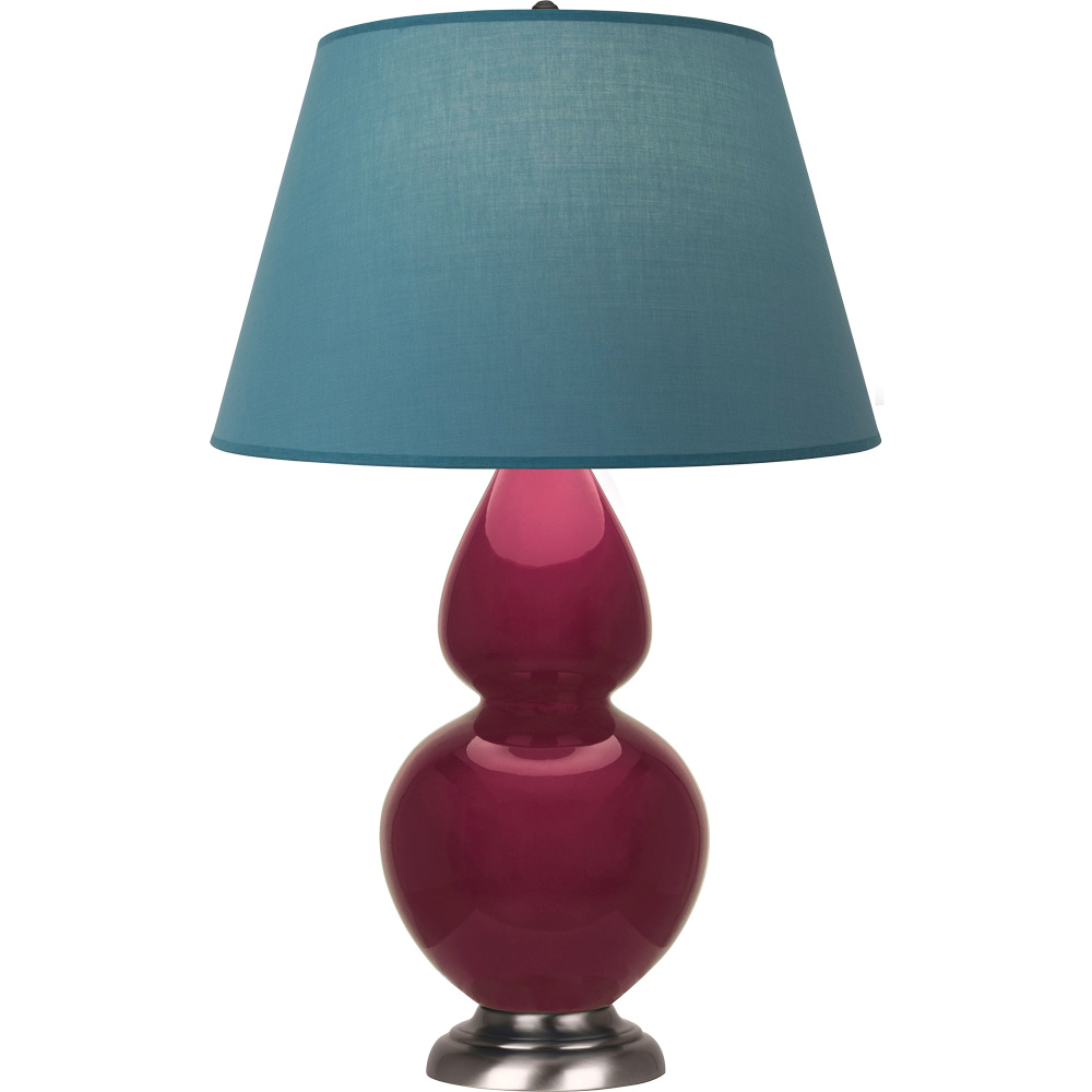 Sugar Plum Glazed Ceramic with Antique Silver Finished Accents Double Gourd Table Lamp with Bright Blue Fabric Shade with Gray Lining - Our Double Gourd collection features a simple but gracefully curving silhouette. Available in a wide array of vibrant colors and several different base finishes.