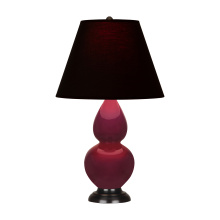 Sugar Plum Glazed Ceramic with Deep Patina Bronze Finished Accents Small Double Gourd Accent Lamp with Navy with Gray Lining Fabric Shade - Our Double Gourd collection features a simple but gracefully curving silhouette. Available in a wide array of vibrant colors and several different base finishes.