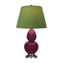 Sugar Plum Glazed Ceramic with Antique Silver Finished Accents Small Double Gourd Accent Lamp with Plum Fabric Shade with Lavender Lining - Our Double Gourd collection features a simple but gracefully curving silhouette. Available in a wide array of vibrant colors and several different base finishes.
