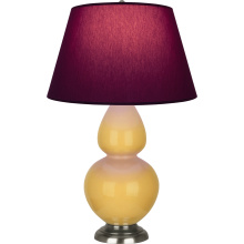 Sunset Yellow Glazed Ceramic with Antique Silver Finished Accents Double Gourd Table Lamp with Pearl Dupioni Fabric Shade - Our Double Gourd collection features a simple but gracefully curving silhouette. Available in a wide array of vibrant colors and several different base finishes.