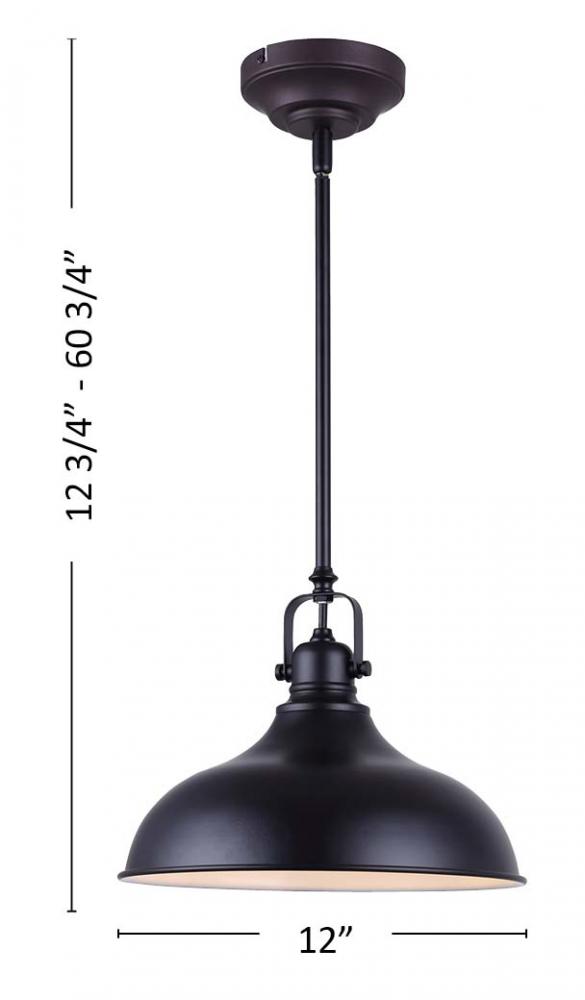 Sussex 1 Light Pendant, Black Finish