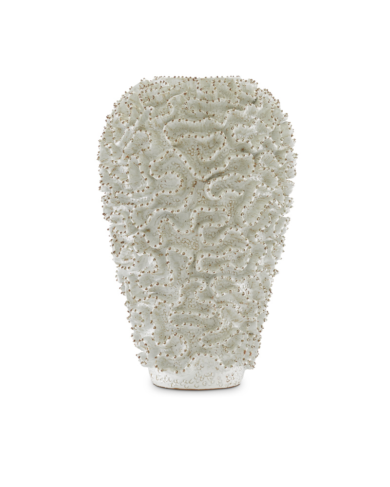Our Swirl Large White Vase is made by a group of women who live at the border of Burma and Thailand. They reproduce this shape to mimic the intricate cactus plant using black terracotta. The result is very interesting, as it certainly has the feel of a cactus vase but it is just as easily an Art Deco design.