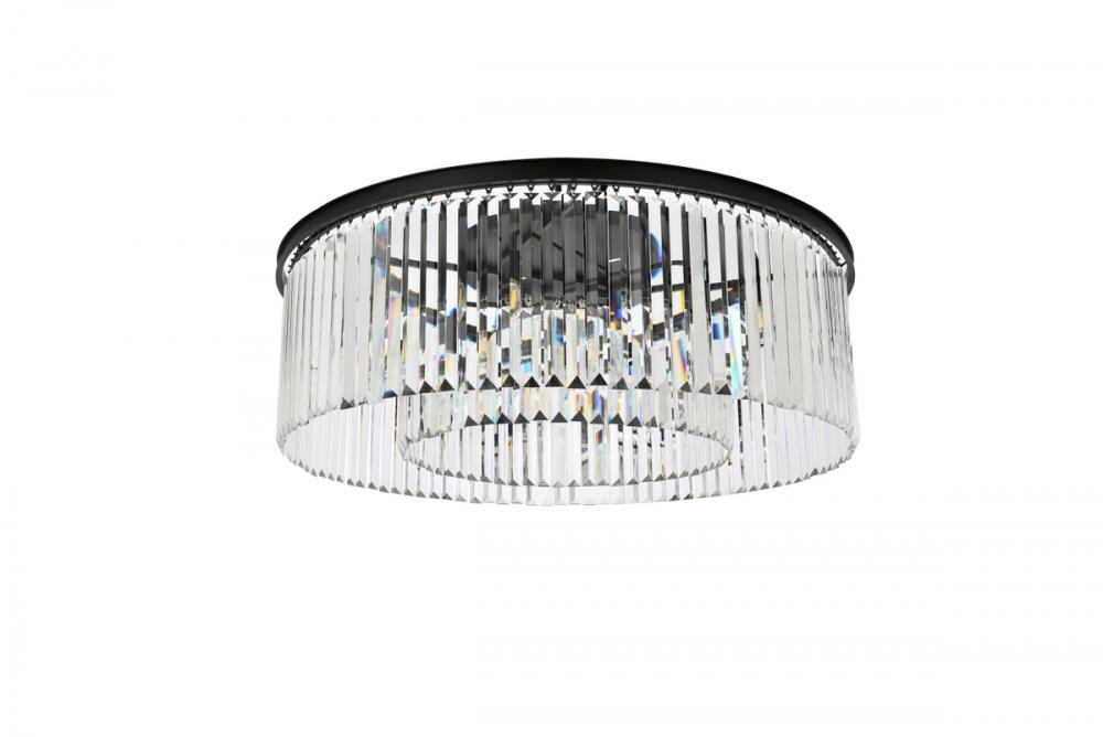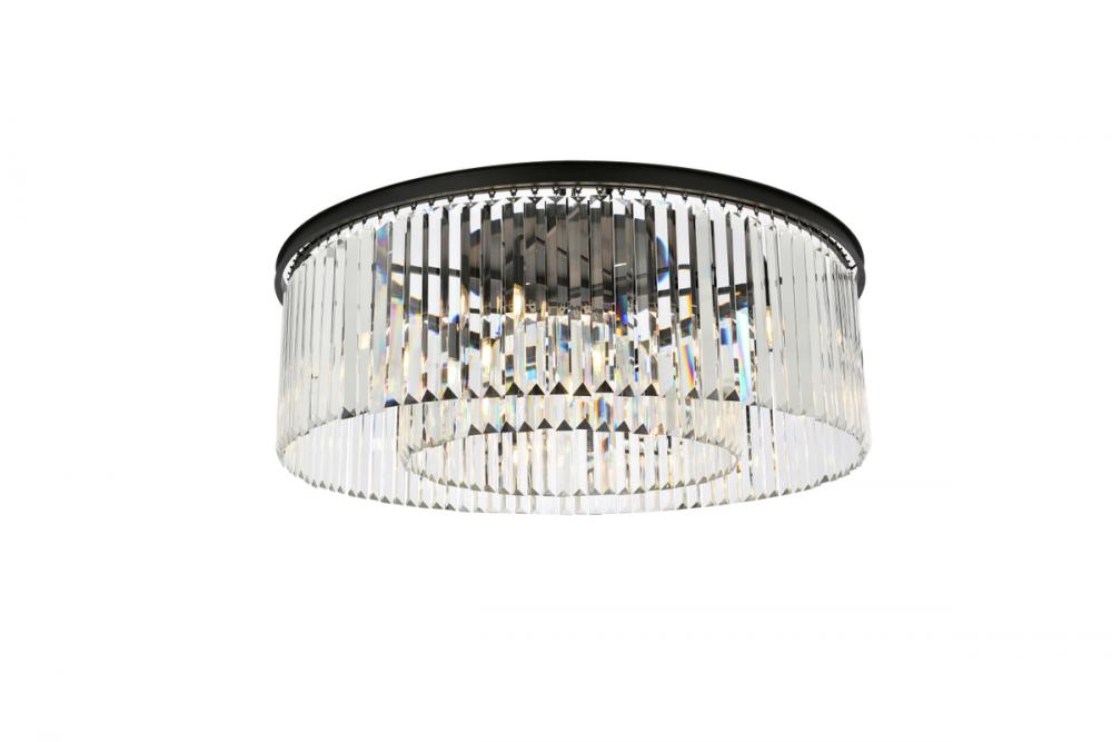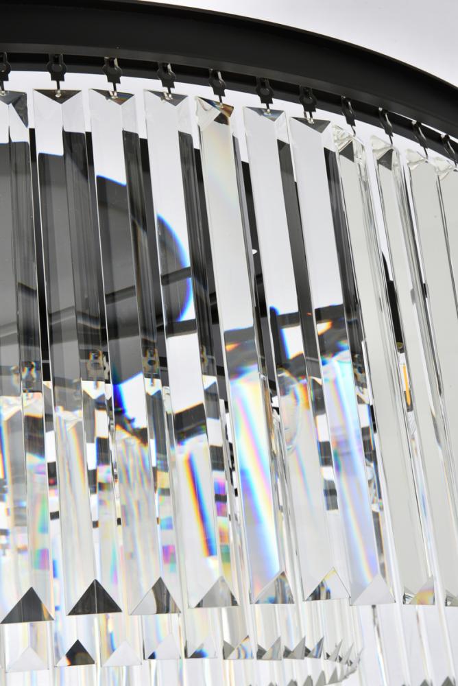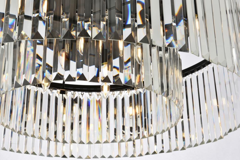 Timeless splendor and modern refinement are brought together in flush-mount Sydney fixtures. Dazzling in dining rooms, staircases, or hallways, the Sydney collection flaunts stunning tiers of royal-cut crystals in clear, golden teak, or Silver shade. A circular Matte Black or polished-nickel finished steel frame adds understated charm to this stunning flush-mount lamp.