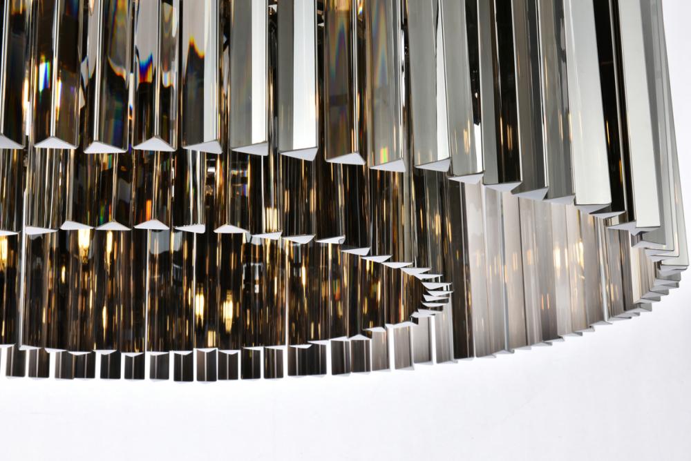 Timeless splendor and modern refinement are brought together in flush-mount Sydney fixtures. Dazzling in dining rooms, staircases, or hallways, the Sydney collection flaunts stunning tiers of royal-cut crystals in clear, golden teak, or Silver shade. A circular Matte Black or polished-nickel finished steel frame adds understated charm to this stunning flush-mount lamp.