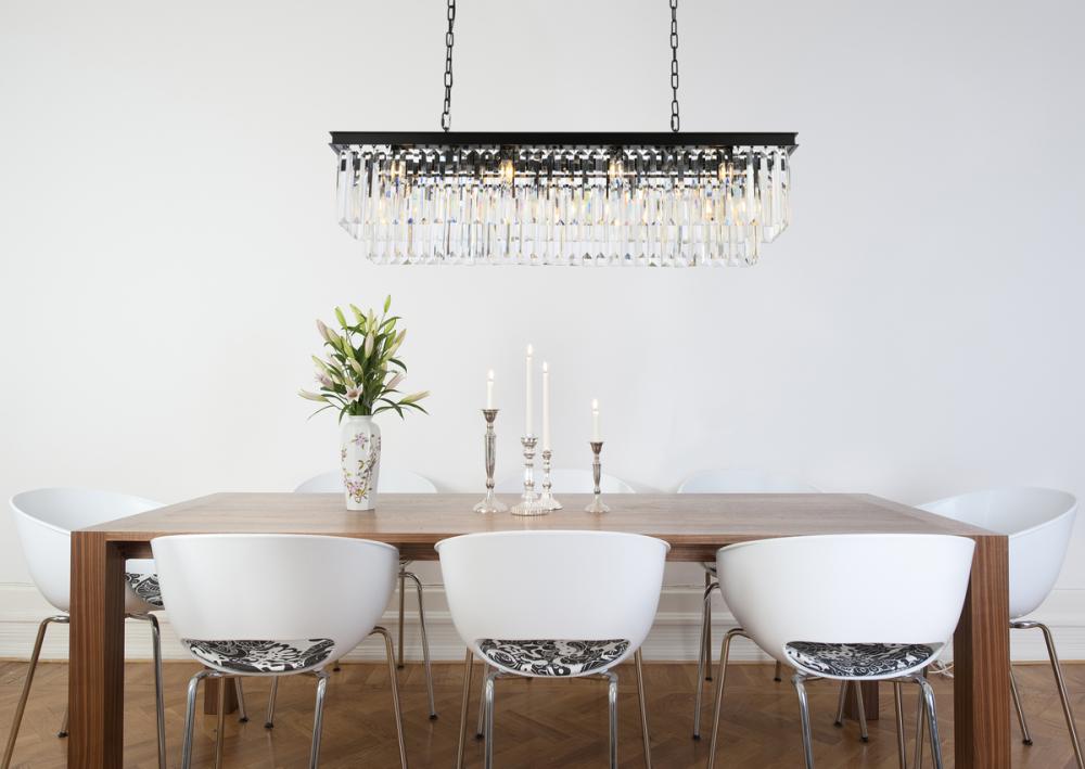Lamp features a length of 50 inches, a width of 14 inches, a height of 18 inches; requires 12 candelabra lights