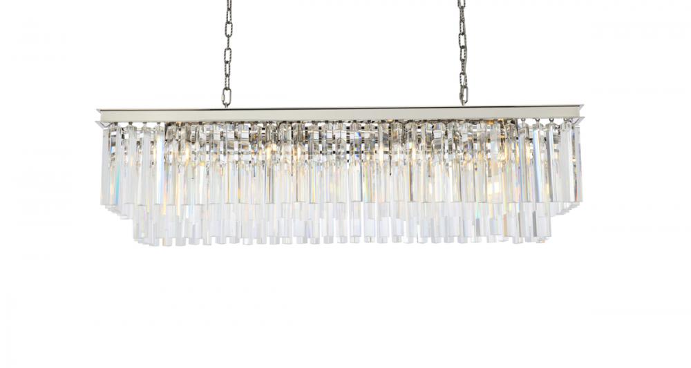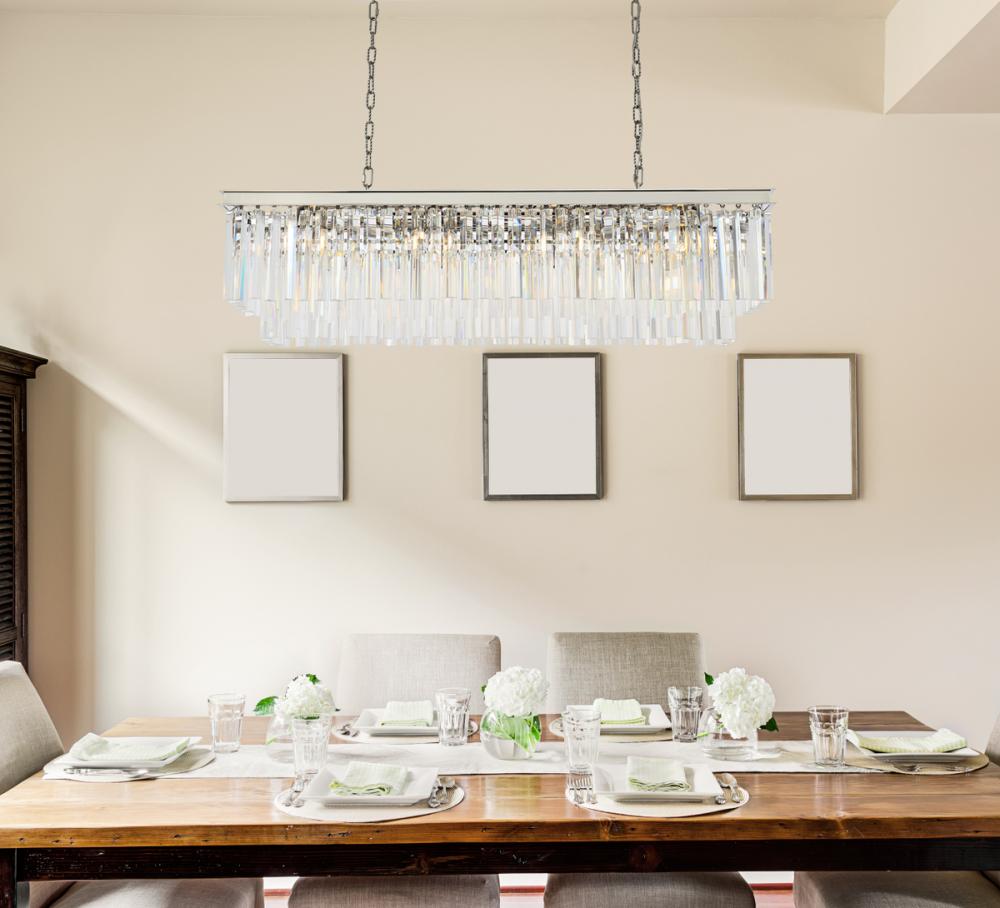 Lamp features a length of 50 inches, a width of 14 inches, a height of 18 inches; requires 12 candelabra lights