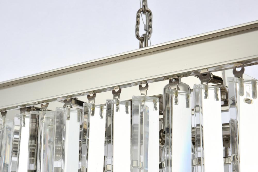 Bring the splendor of the ballroom into your home with a sparkling Sydney fixture. Stunning in foyers, dining rooms, or stairwells, the Sydney collection brings to mind the glamour of the Roaring Twenties. Features glimmering tiers of royal-cut clear, golden-teak, or Silver-shade crystals. In mocha-brown or polished-nickel finishes, this sturdy, yet delicate, pendant lamp will be the perfect centerpiece for any décor.