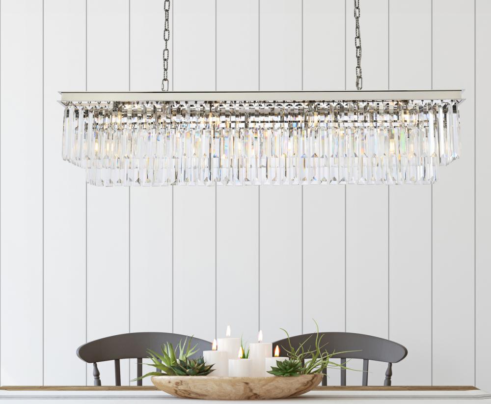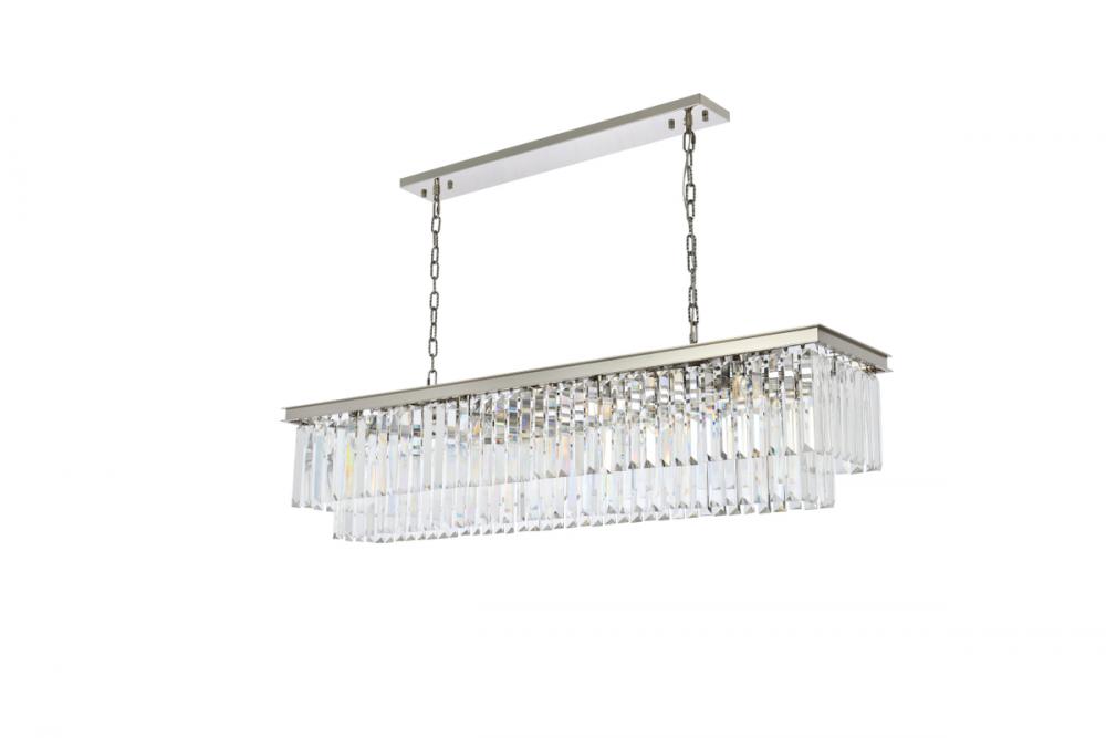 Lamp features a length of 60 inches, a width of 14 inches, a height of 18 inches; requires 12 candelabra lights