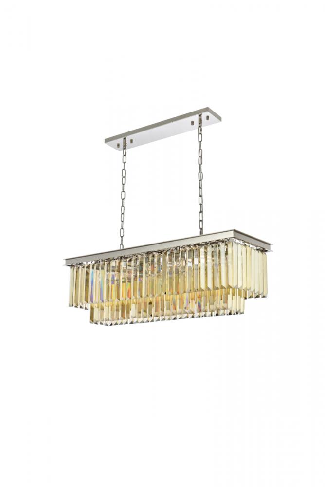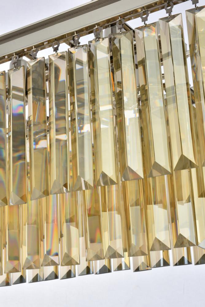 Bring the splendor of the ballroom into your home with a sparkling Sydney fixture. Stunning in foyers, dining rooms, or stairwells, the Sydney collection brings to mind the glamour of the Roaring Twenties. Features glimmering tiers of royal-cut clear, golden-teak, or Silver-shade crystals. In mocha-brown or polished-nickel finishes, this sturdy, yet delicate, pendant lamp will be the perfect centerpiece for any décor.